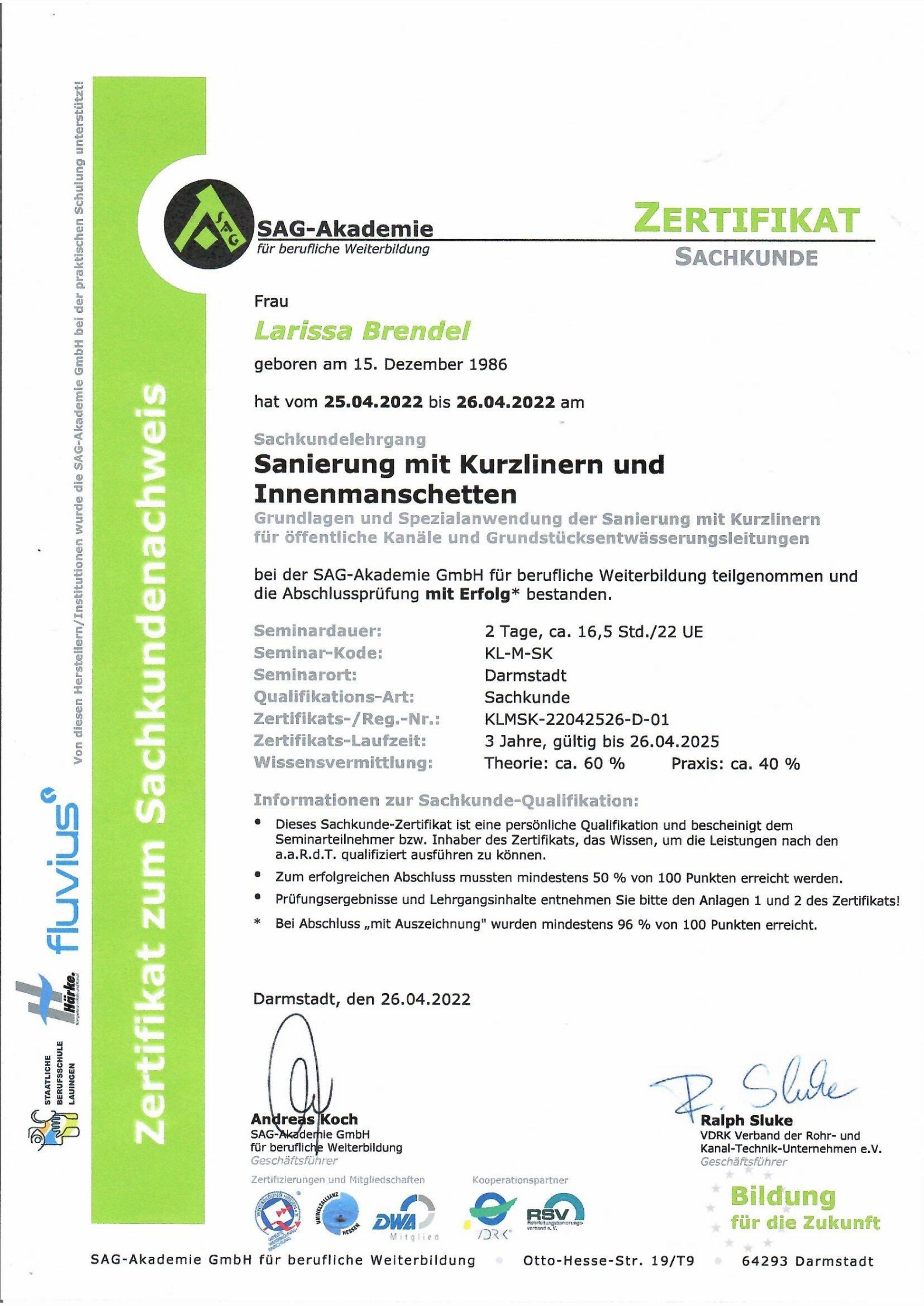 Neben den gängigen Bürotätigkeiten habe ich im Jahr 2014 zudem den Sachkundelehrgang in Kanalinspektionen absolviert sowie eine Schulung bei der Firma KESSEL in Sachen Rückstauschutz.
